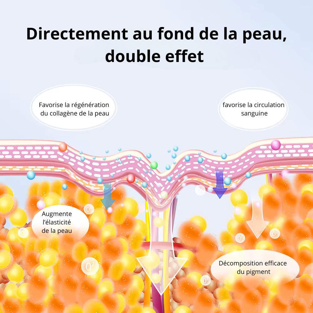 - Éclaircissement du teint : La lumière verte agit sur les tâches pigmentaires, redonne de l'éclat, et uniformise votre teint, pour une peau radieuse.